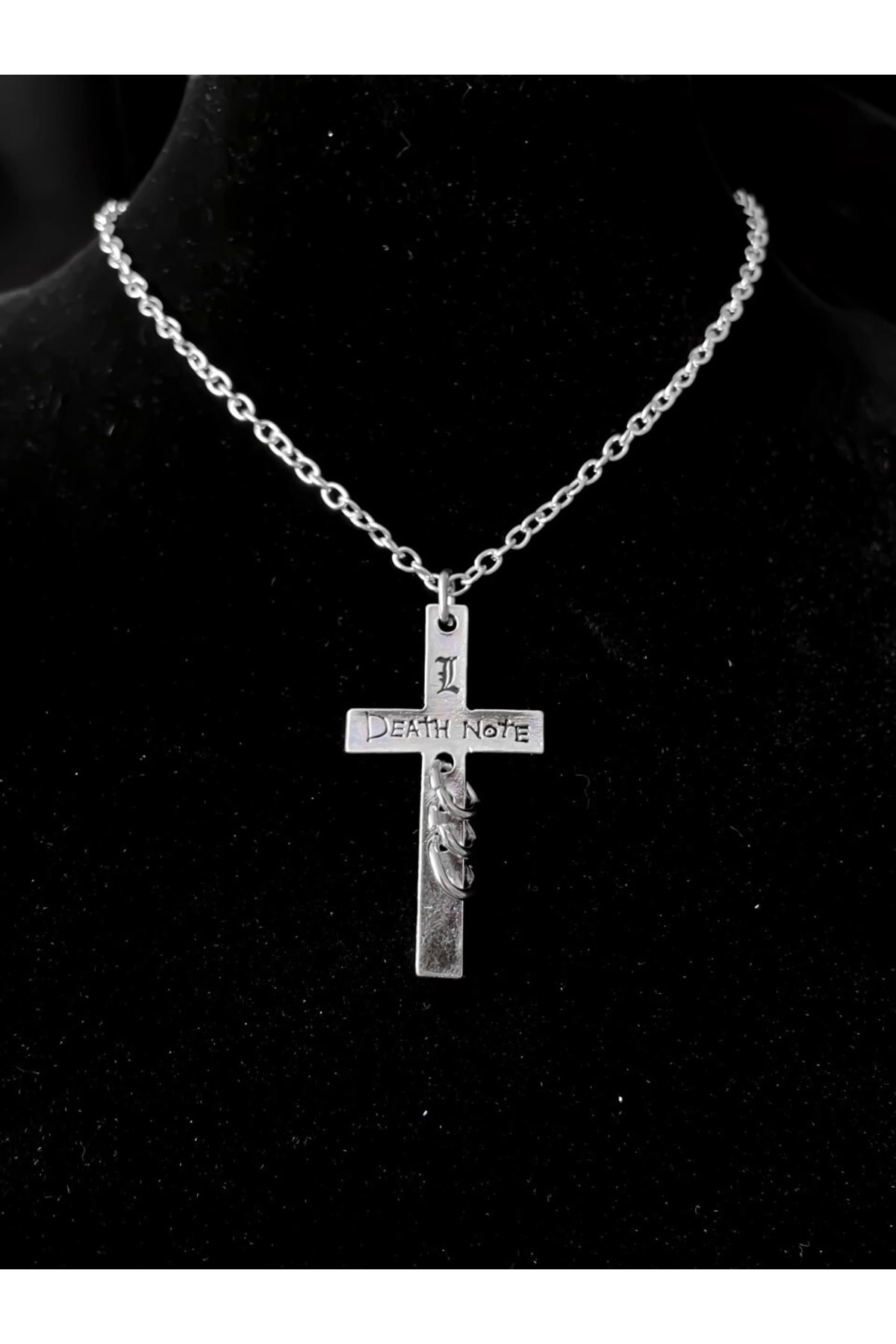 Metal malzeme kullanımı sayesinde dayanıklılık ve uzun ömürlü kullanım sunar; Death Note anime serisinin ikonik haç tasarımıyla dikkat çeker ve anime severler için mükemmel bir aksesuar seçeneği olur; Klasik ve modern çizgileri bir arada barındırarak, her türlü kıyafetle uyum sağlar ve stilinizi tamamlar;