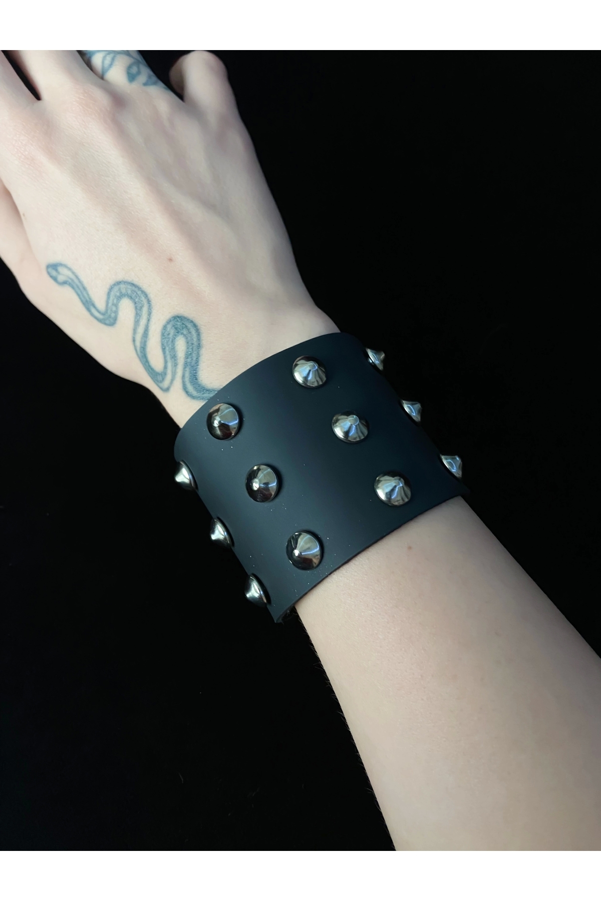 Dikenli Spikelı Üç Sıralı Suni Deri Bileklik (Unisex)