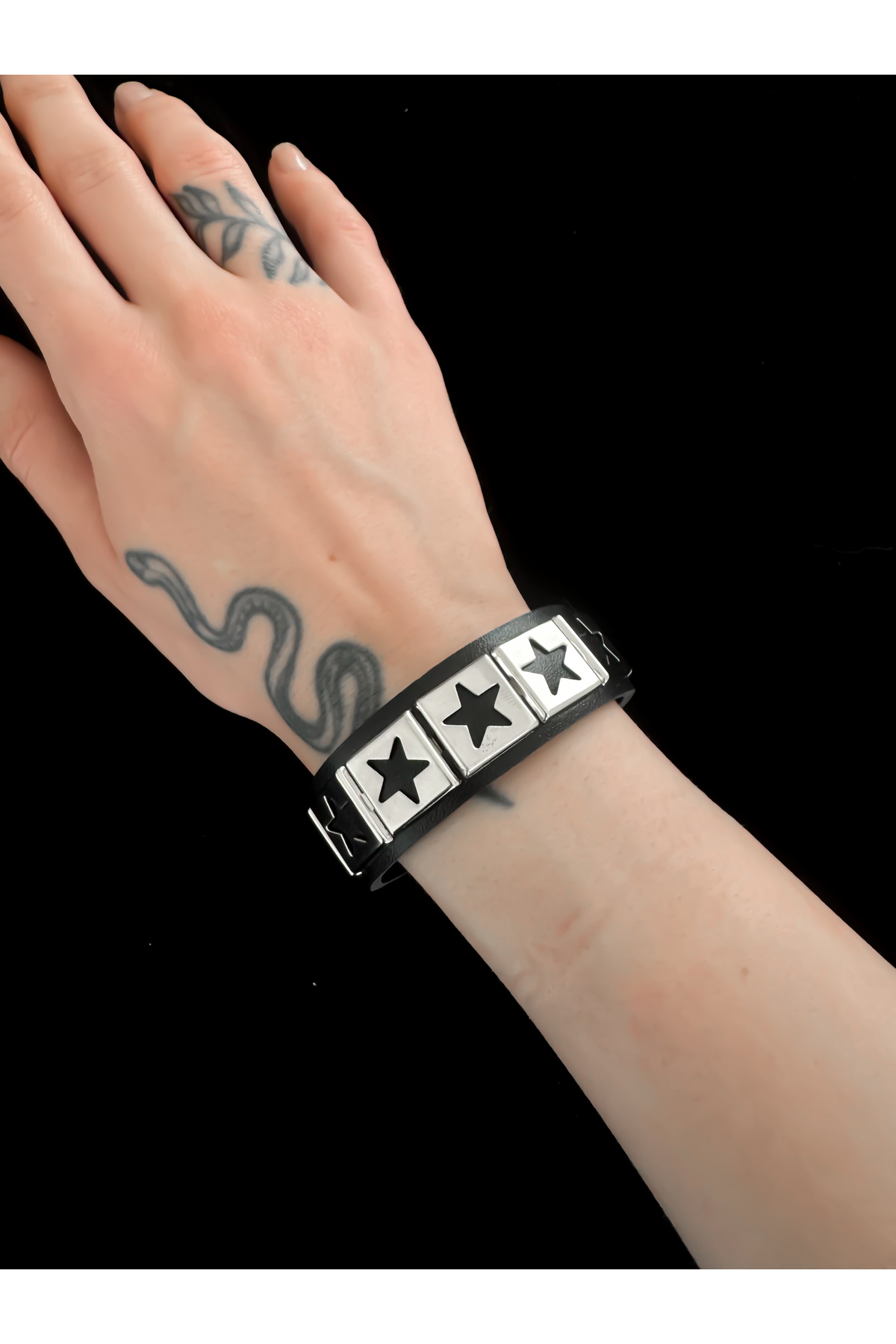 - Gotik punk tarzını yansıtan kare yıldız desenleriyle süslenmiş, şık ve modern bir aksesuar.; - Gençlerin enerjisini ve stilini yansıtan tasarımıyla dikkat çekici bir görünüm sunar.; - Unisex kullanım imkanı sayesinde hem kız hem de erkek kullanıcılar için uygundur.; -BİLEKLİK UZUNLUĞU 22.5 CM