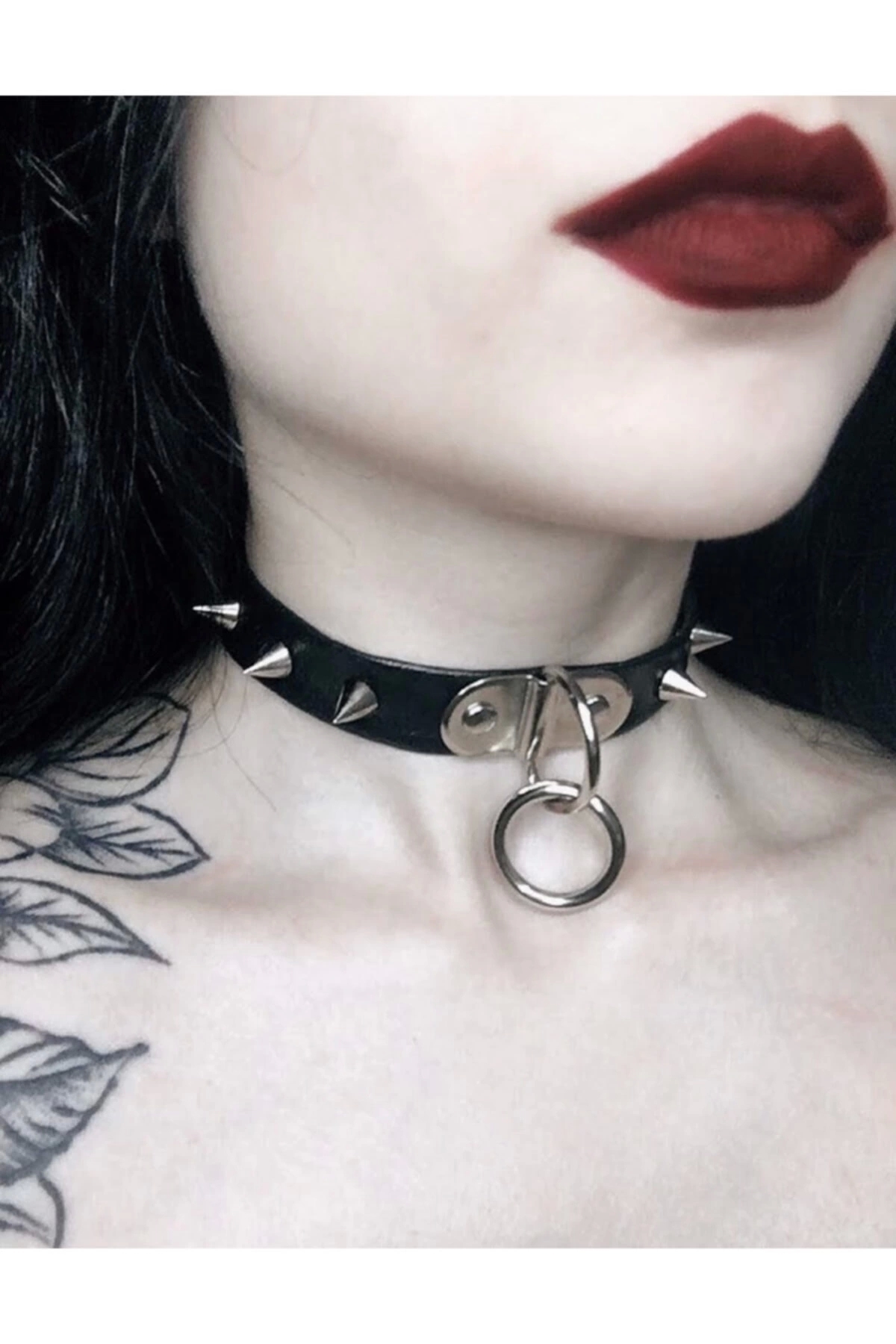 Gothic Punk Dikenli Halkalı Suni Deri Tasma Kolye Choker