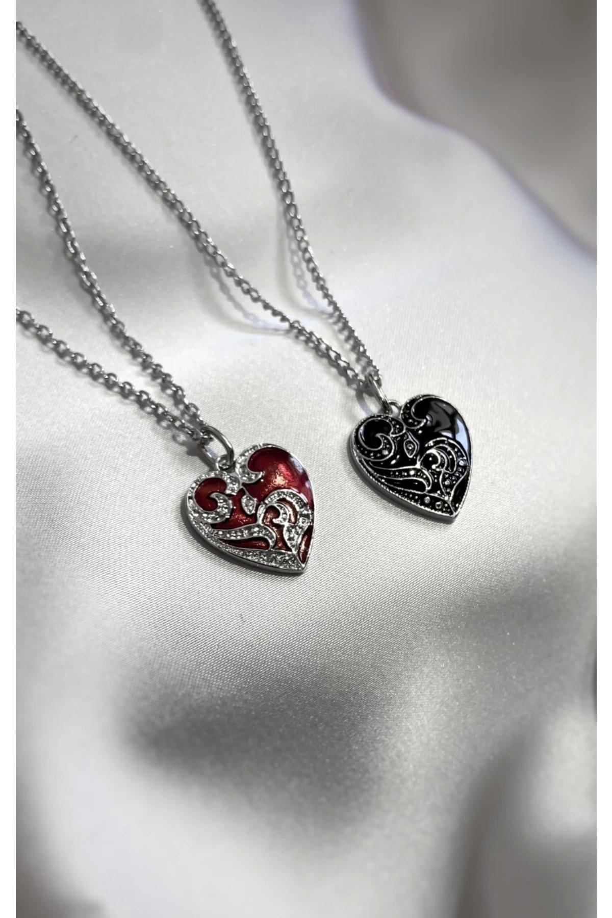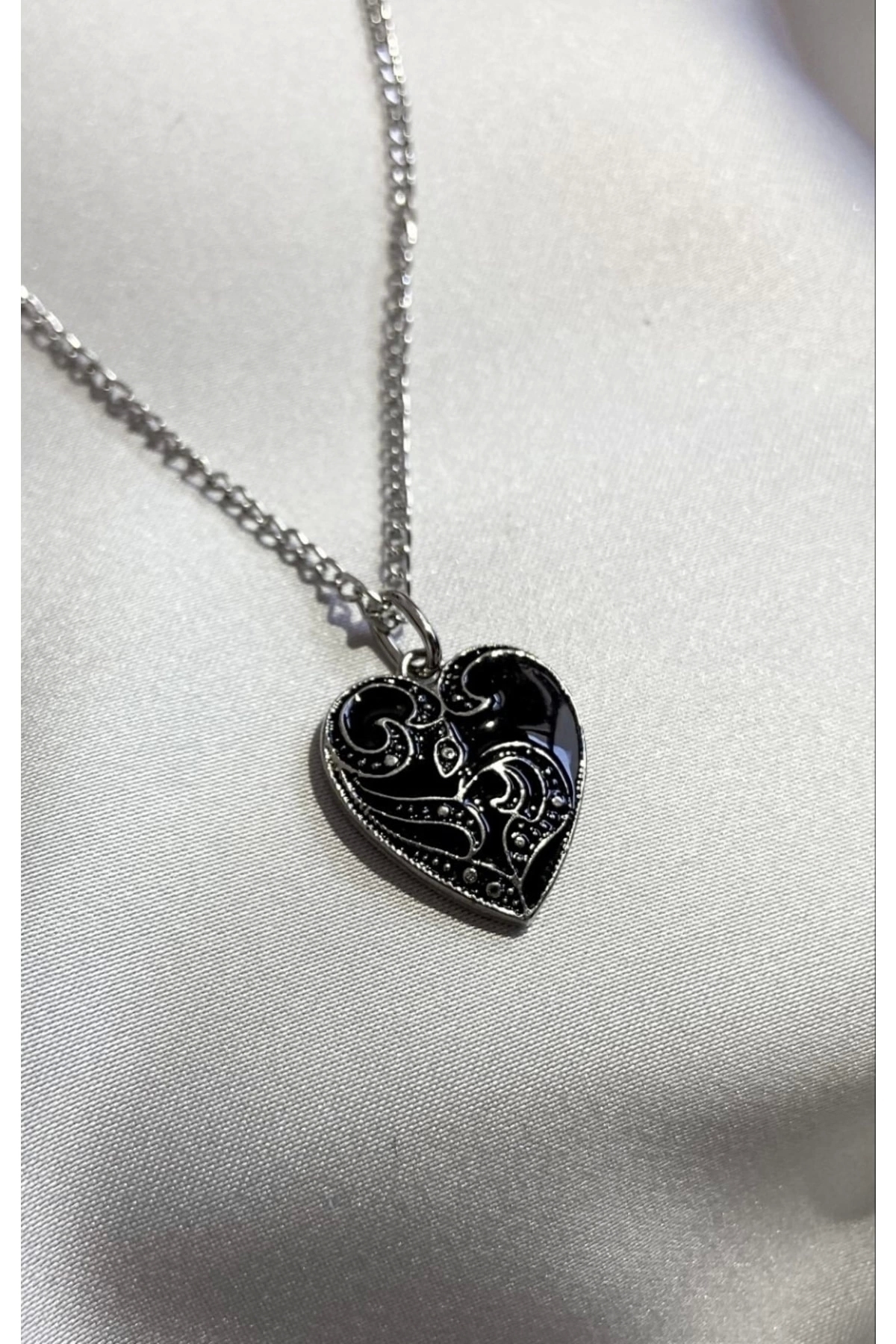 Gotik Gothic Lolita Desenli Kalp Kolye ; Ürünün zincir uzunluğu 30 cm'dir.; İstenilen ölçüde kısaltılarak kullanılabilmektedir.;