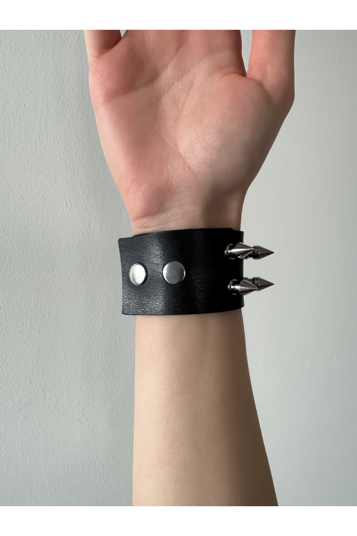 Gotik Gothic Punk Oluklu Spikelı Suni Deri Bileklik Spikelı Deri Bileklik Çivili Bileklik