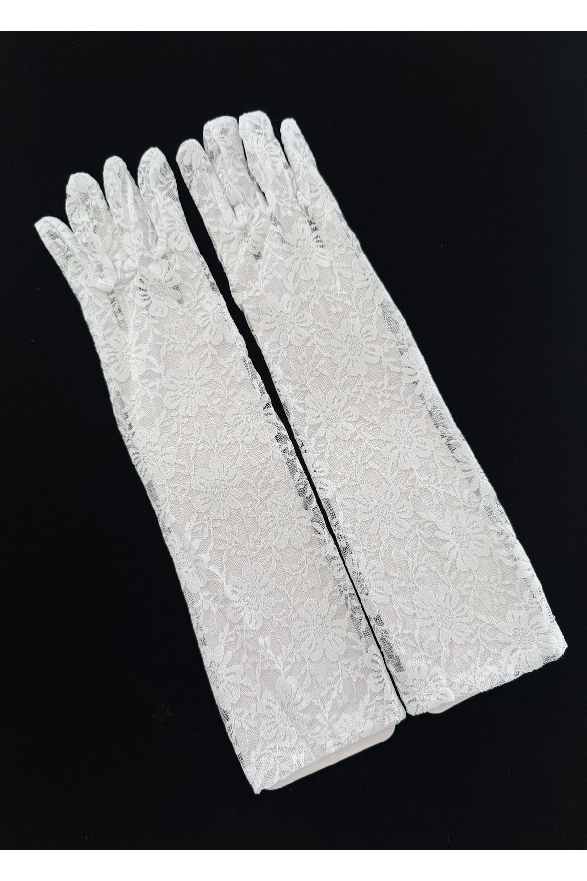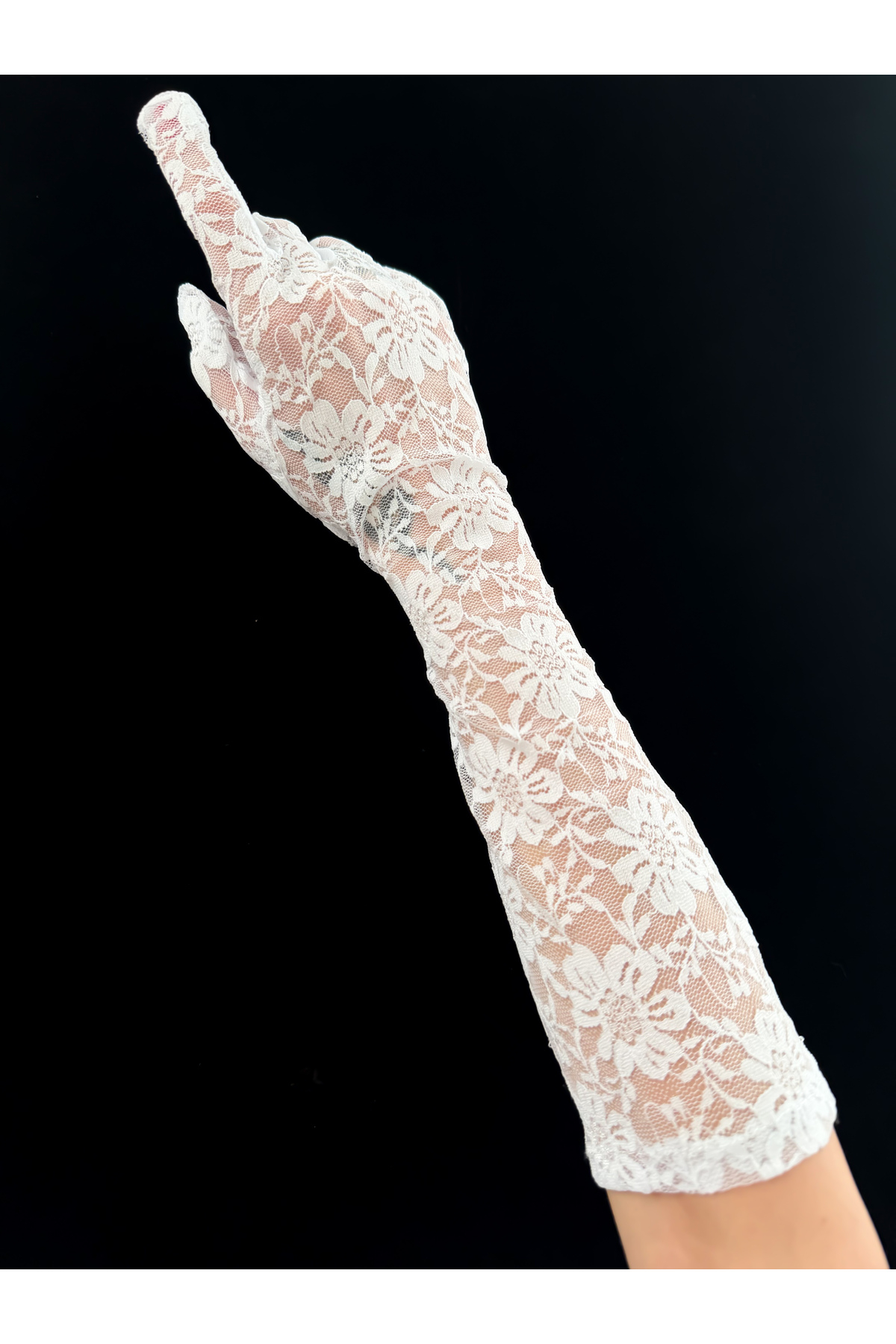Gotik Gothic Victorian Uzun Dantelli Eldiven Dantelli Parti Eldiveni Beyaz Dantel Eldiven