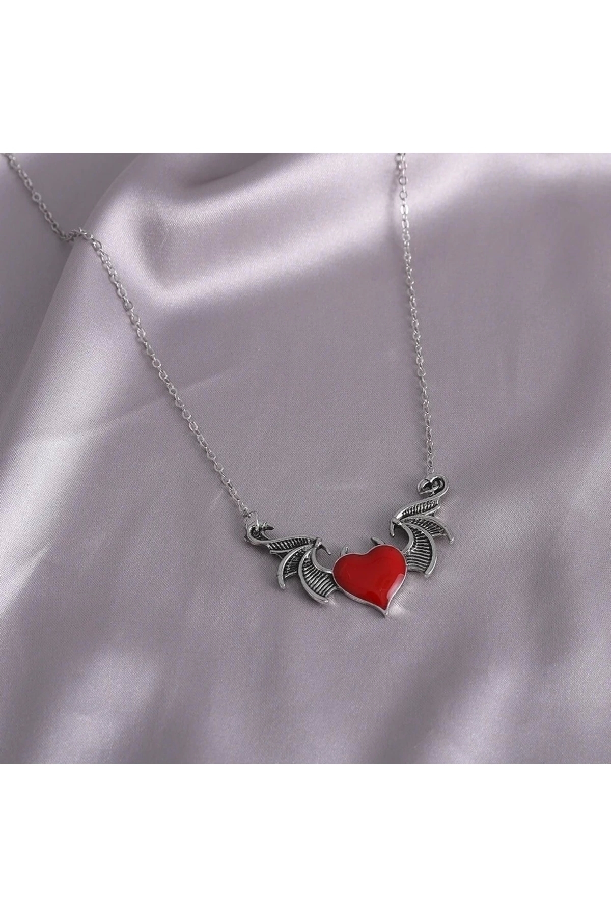 Gençlerin enerjisini ve stilini yansıtan gotik lolita tasarımıyla dikkat çeken bu kolye, gençlerin favorisi olmaya aday; Metal materyali sayesinde dayanıklılığı ve uzun ömürlü kullanımı ile öne çıkıyor; Şeytan kulakları ve kanat detaylarıyla gotik ve punk tarzını benimseyenler için ideal bir aksesuar seçeneği sunuyor;