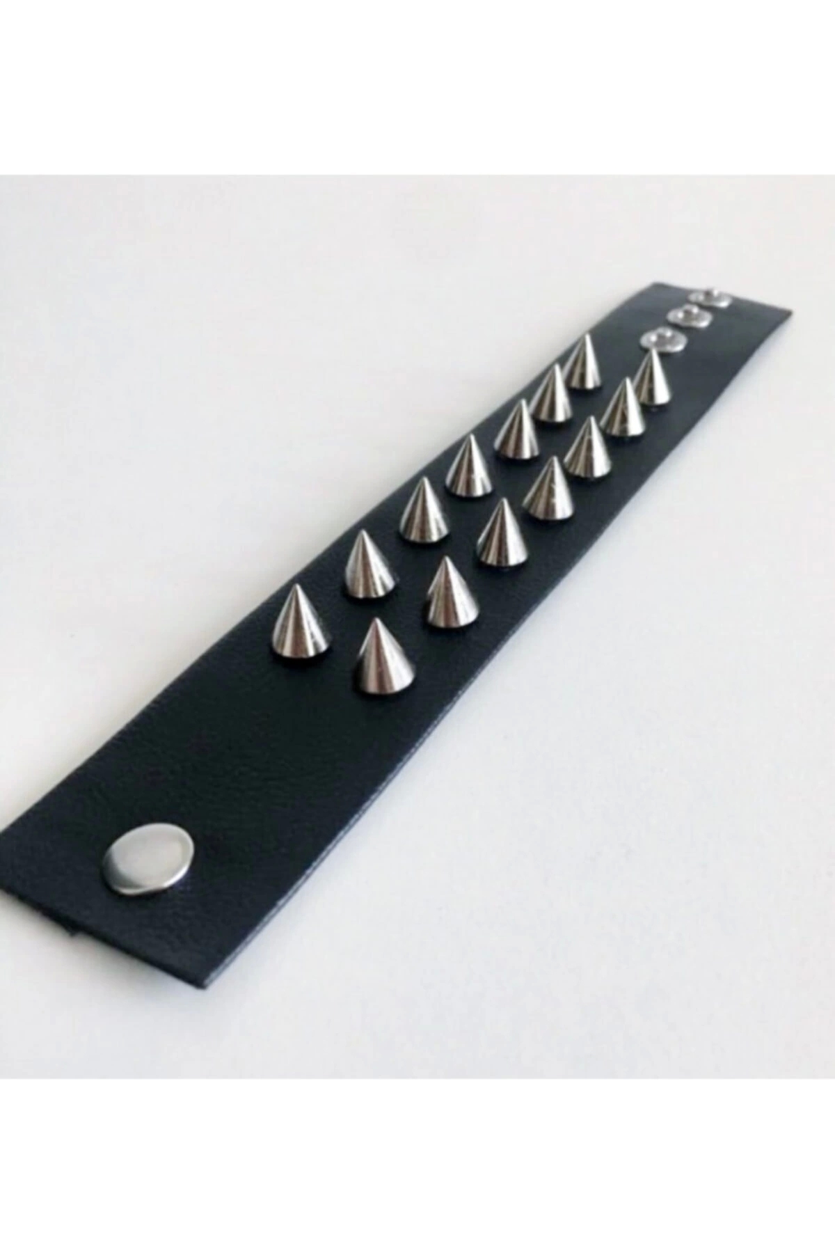 Dikenli Spikelı Üç Sıralı Suni Deri Bileklik (Unisex)