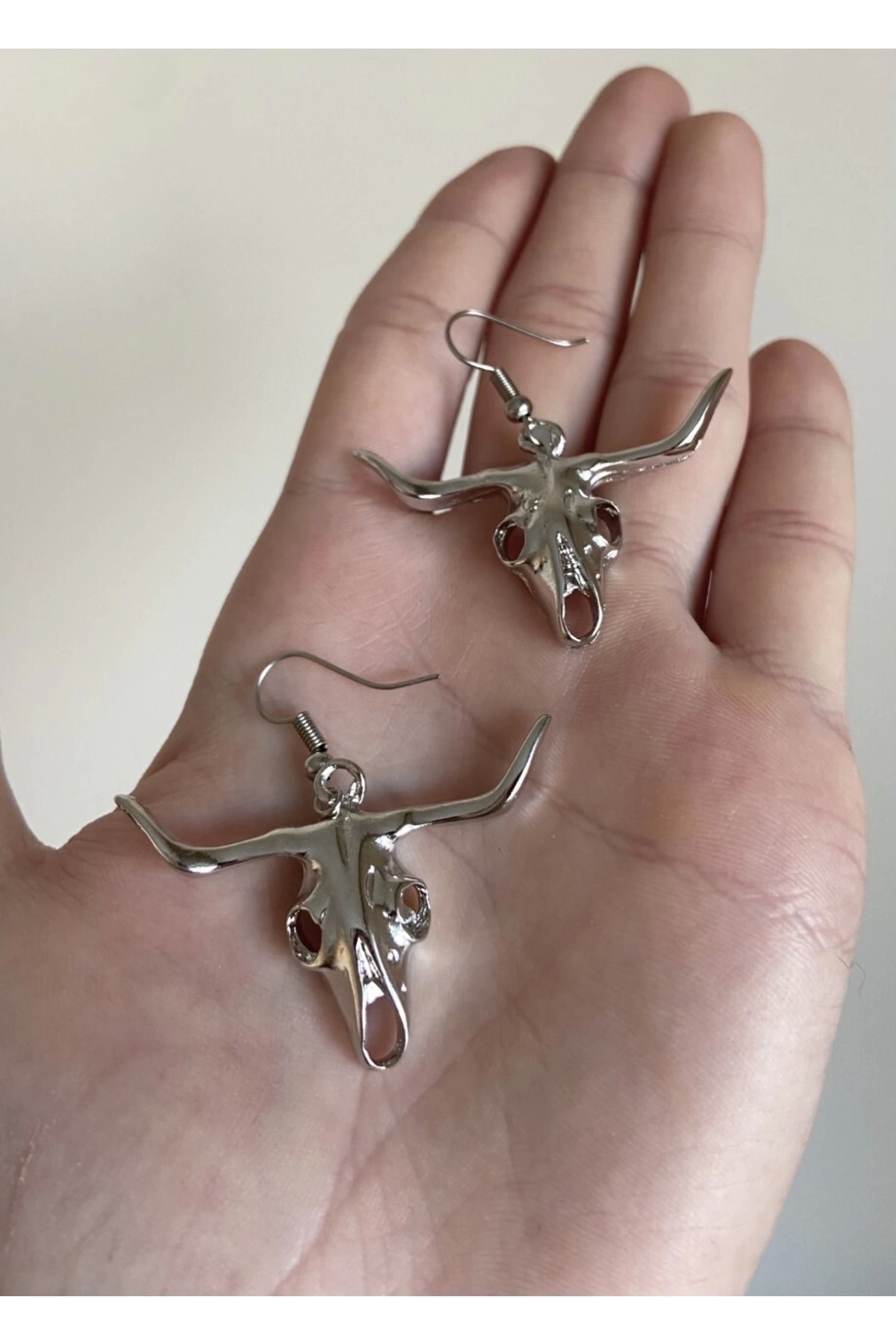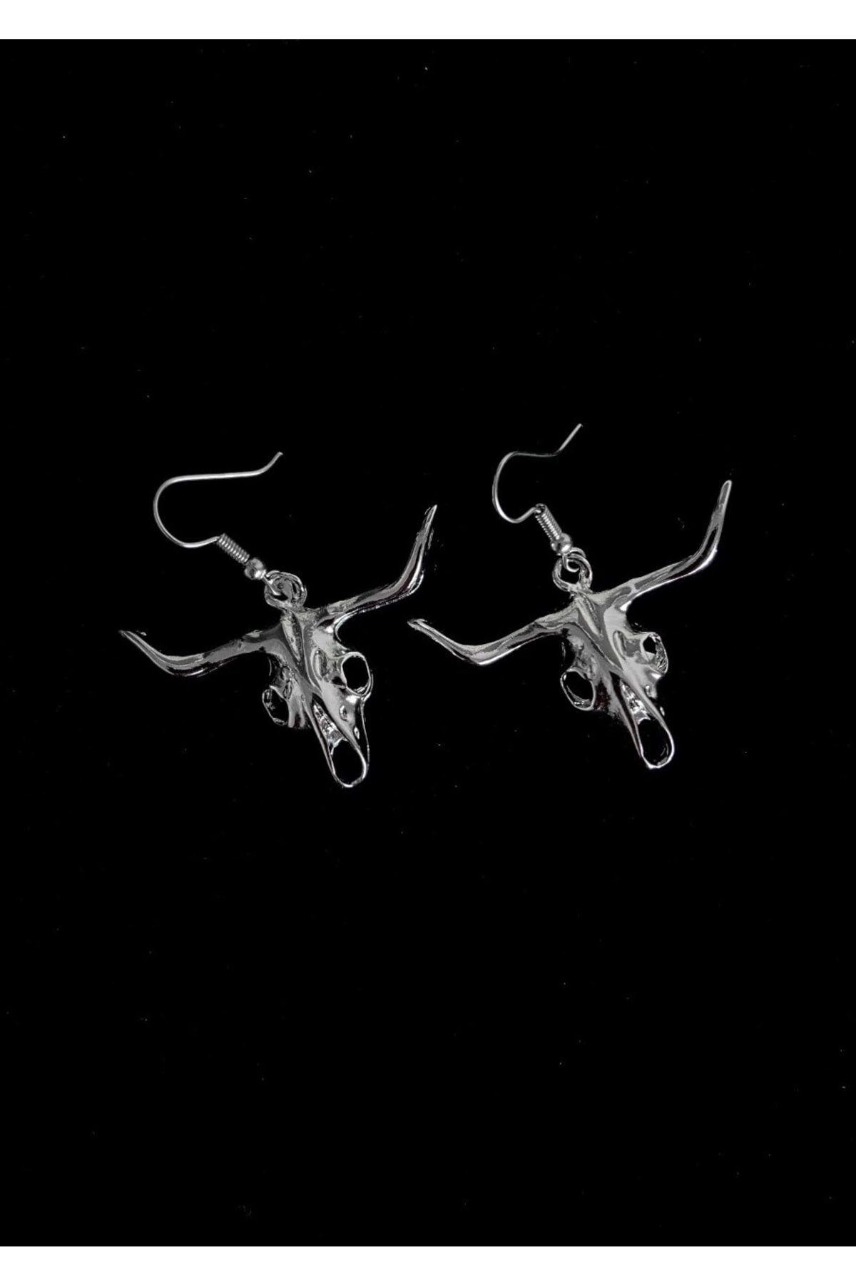 Gotik Punk Keçi Kafası Küpe ; Ürünün EBATLARI : Boy 2.5 cm , En 4 cm ; Meteryal : Metal;