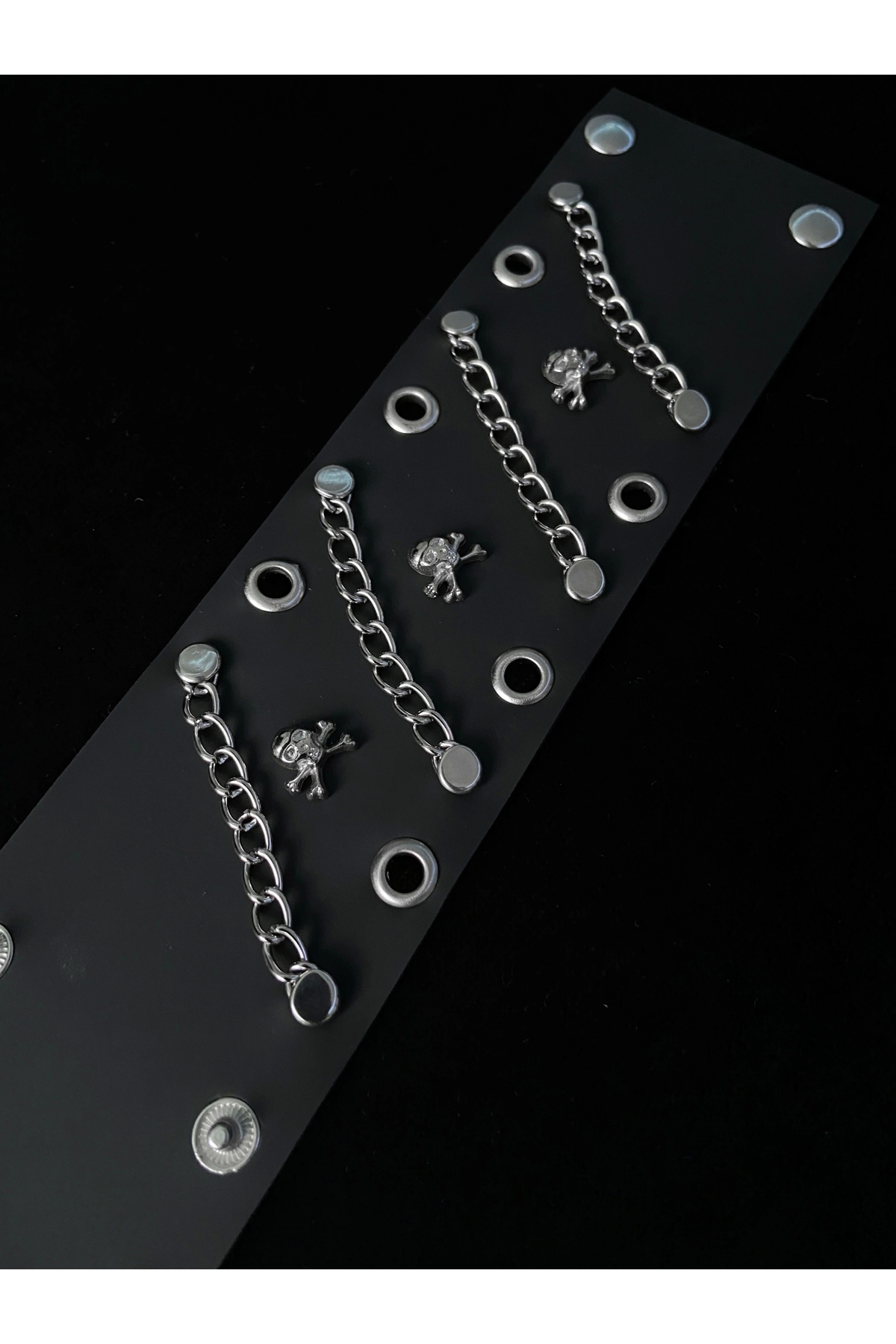 Gotik Punk Kuru Kafalı Skull Zincirli Deri Bileklik (UNISEX)