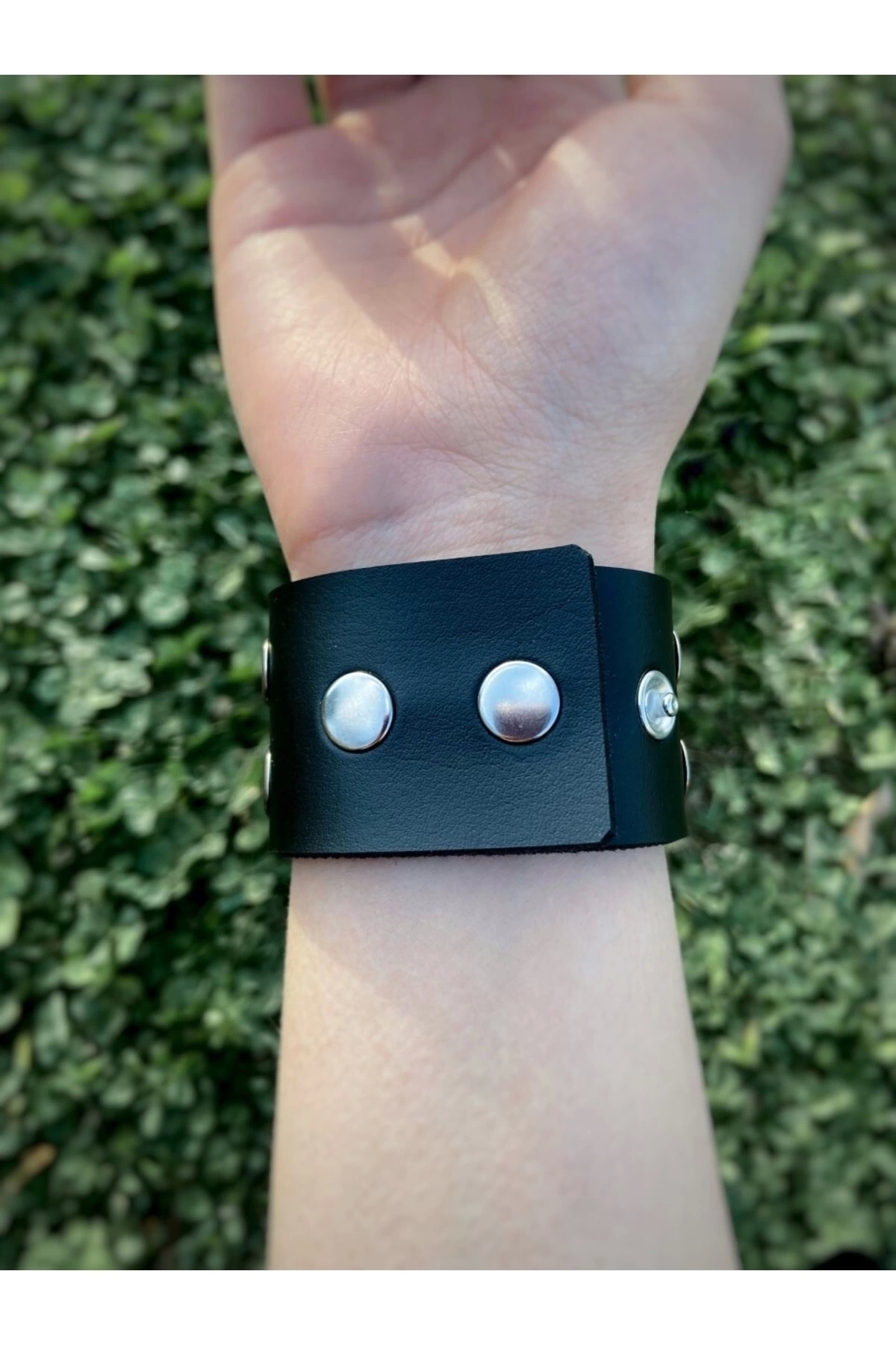 Gotik Punk Suni Deri Kalın Düz Deri Bileklik (UNISEX BEDENLİ)