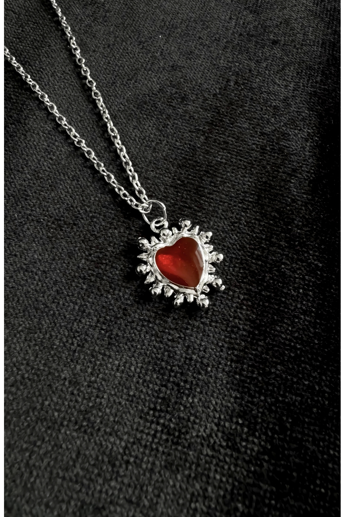 Gotik Victorian Bordo Taşlı Kalp Kolye; Kolyenin zincir uzunluğu 30 cm'dir.;