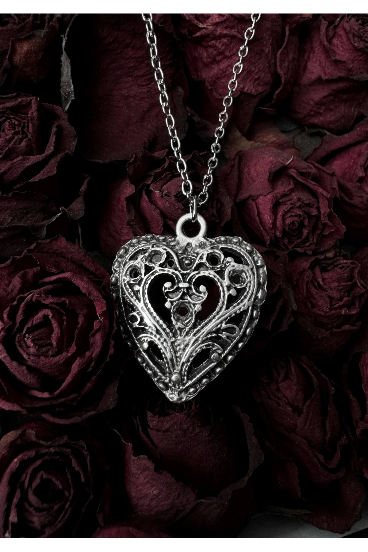 Gençlerin enerjisini ve stilini yansıtan gotik victorian desenli kalp kolye, modern ve şık bir aksesuar arayanlar için idealdir; Dayanıklı metal materyali sayesinde uzun süreli kullanım sunar ve günlük giyimde rahatlıkla tercih edilebilir; Gotik tasarımıyla dikkat çeken bu kolye, her türlü kıyafetle kolayca uyum sağlar ve kişisel tarzınıza özgün bir dokunuş katar;