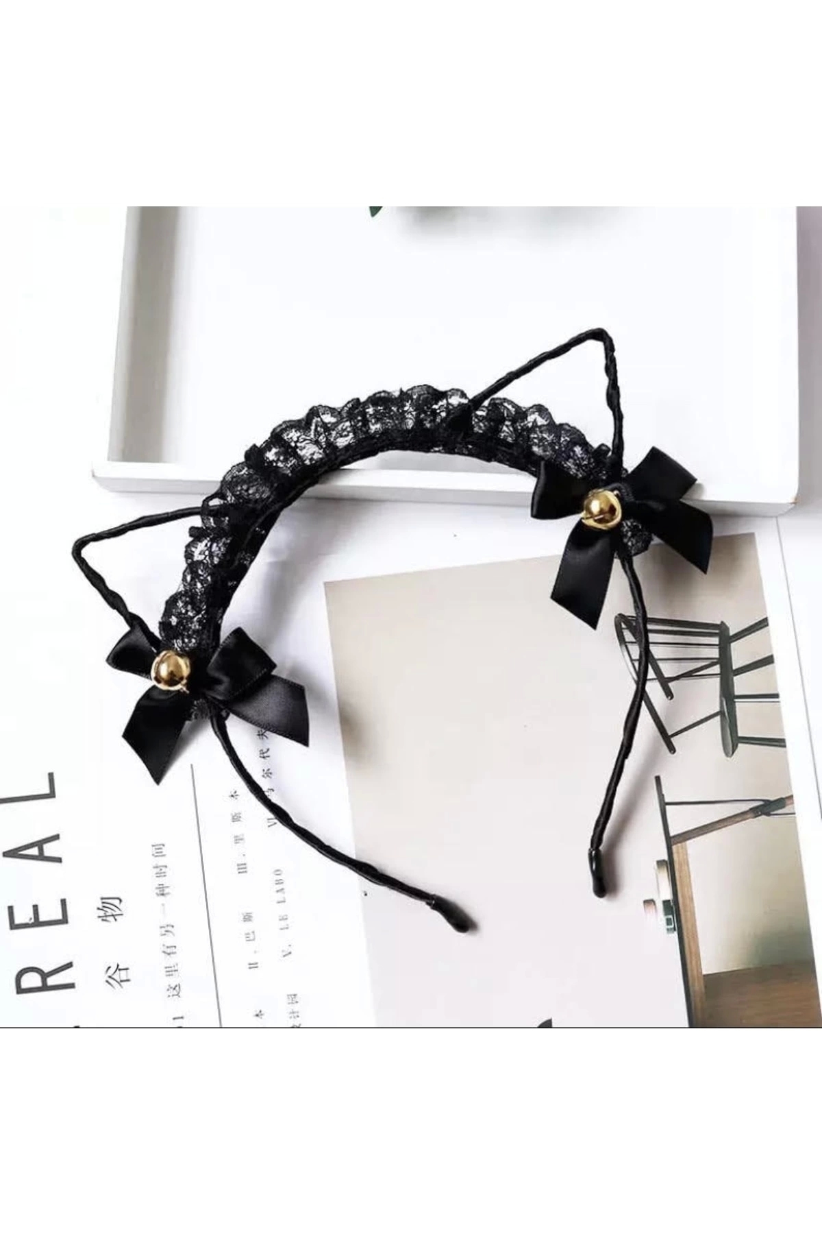 Gotik Gothic Lolita Cosplay Harajuku Kedi Kulağı Zilli Taç Toka