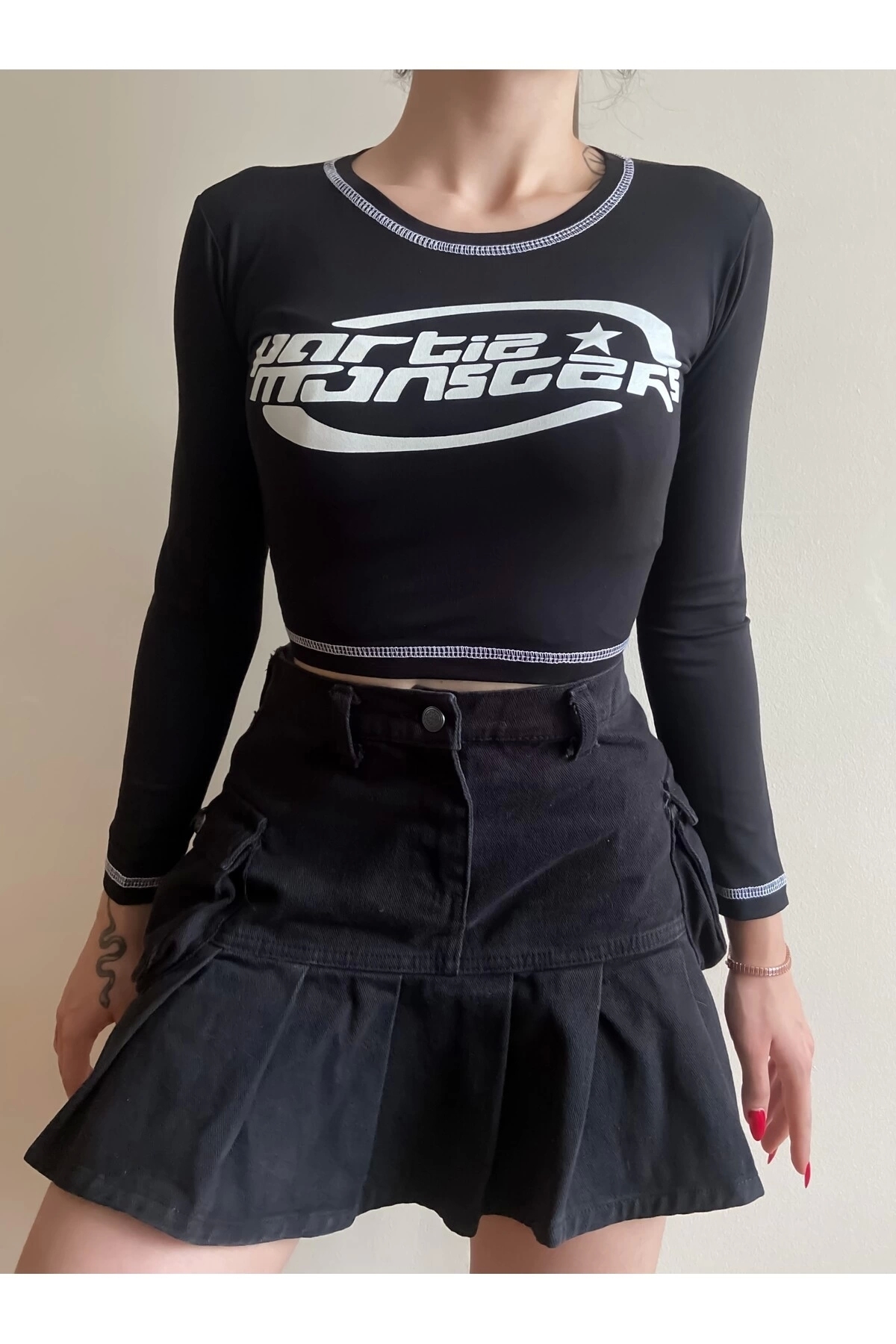 Y2K Harajuku Partie Monsters Uzun Kollu Bluz